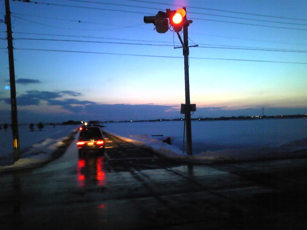 この空の色~、車のテールランプの赤色