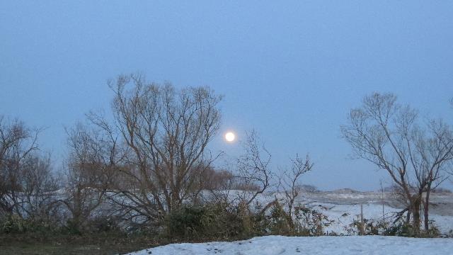 残雪と満月であった