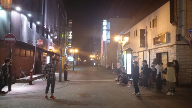 夜のストリートライブを