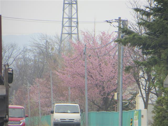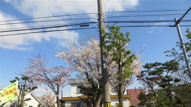 桜と残雪 じつに 北国らしい