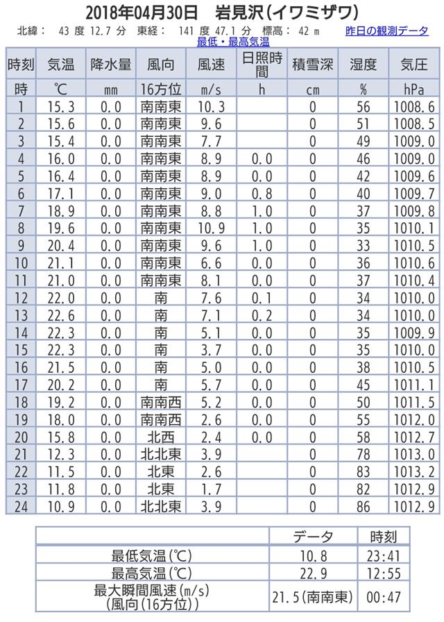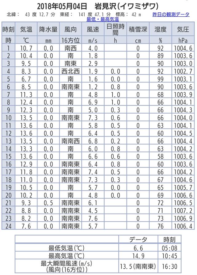 4日の北海道いわみざわ市の温度である
