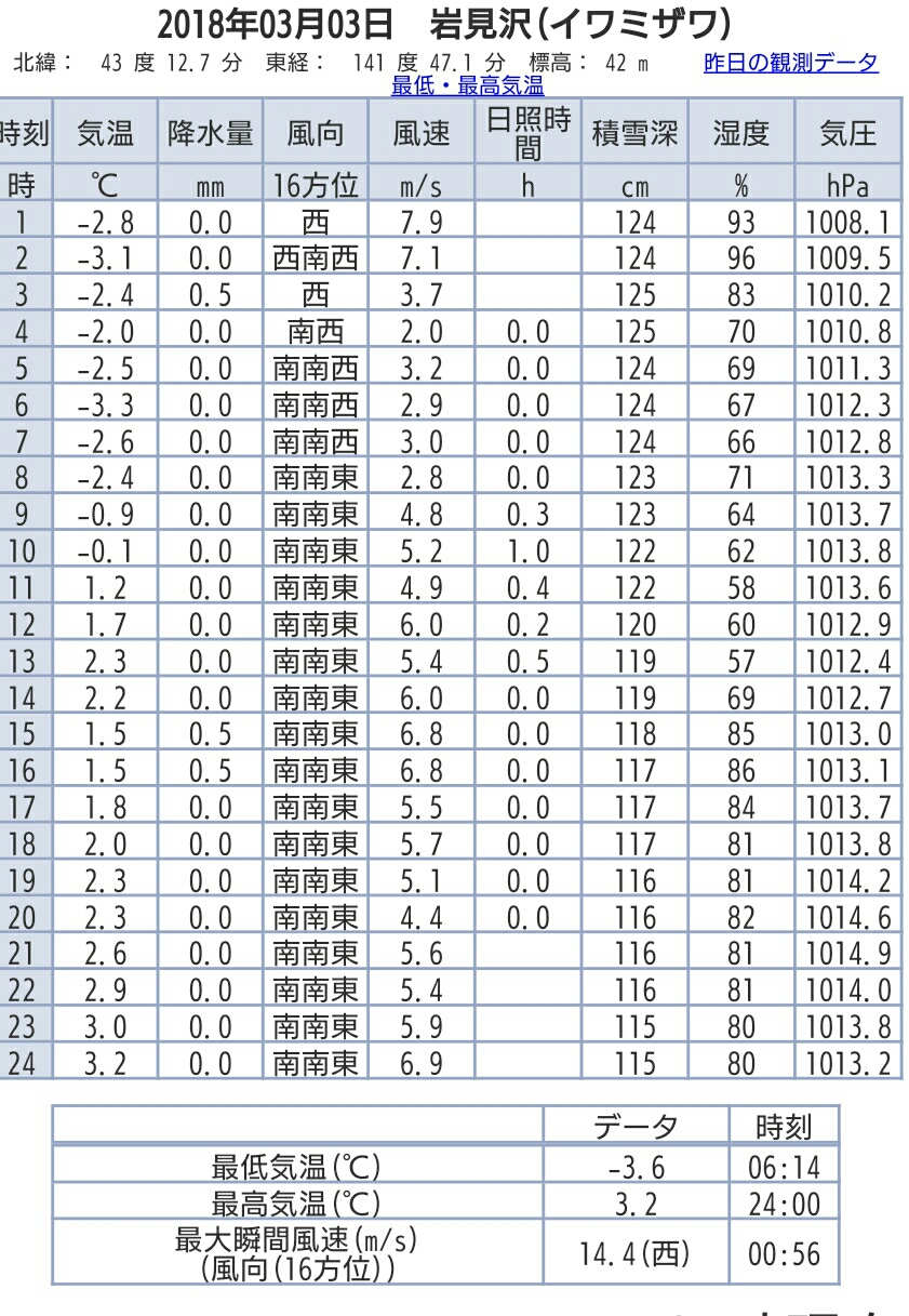 きのうの ほっかいどういわみざわしのきおんとせきせつであります