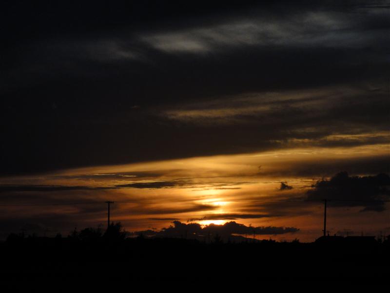 夕陽は雲に