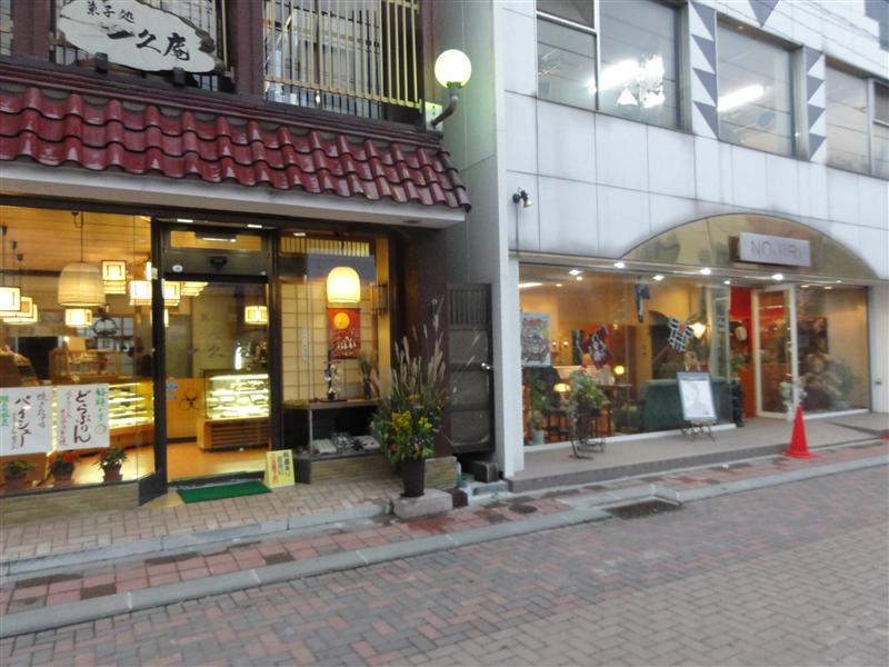 お菓子やさんの店のまえに