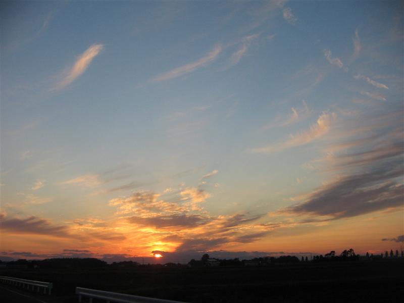 夕陽 雲に落下さんでした