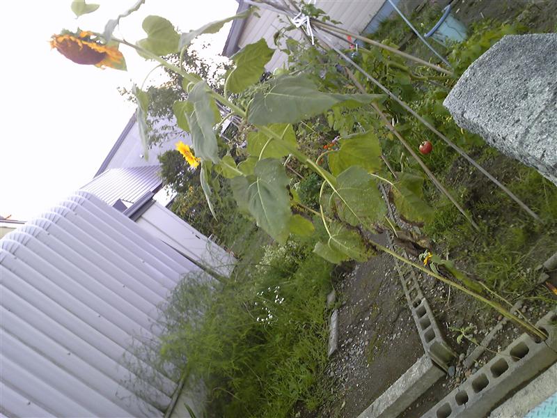 ブロックの穴からひまわり