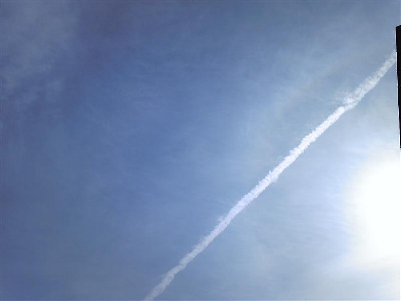 今日も飛行機雲の居残りさんを見っけたよ
