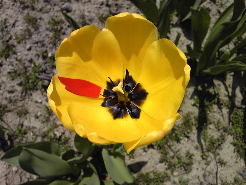 黄色の花びらに ちょこっと赤い色が・・・