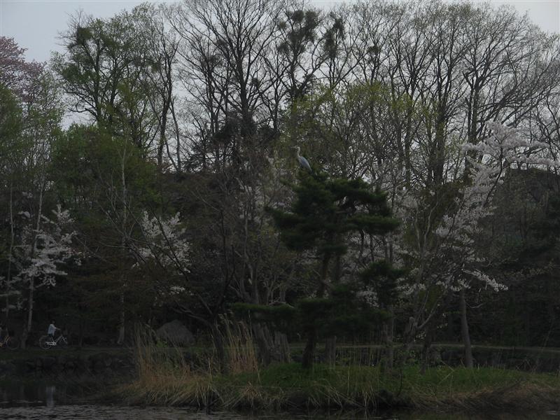 木に アオサギが生っていたよ・・・