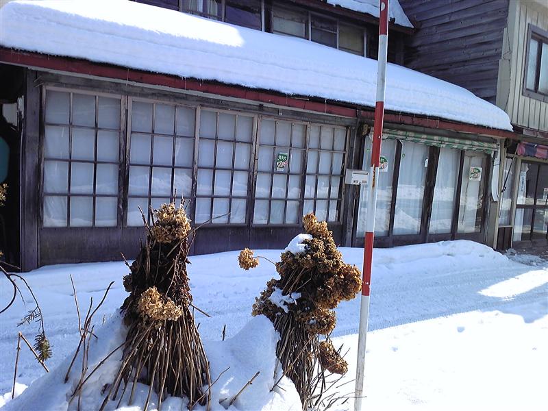 雪の中に紫陽花発見したです