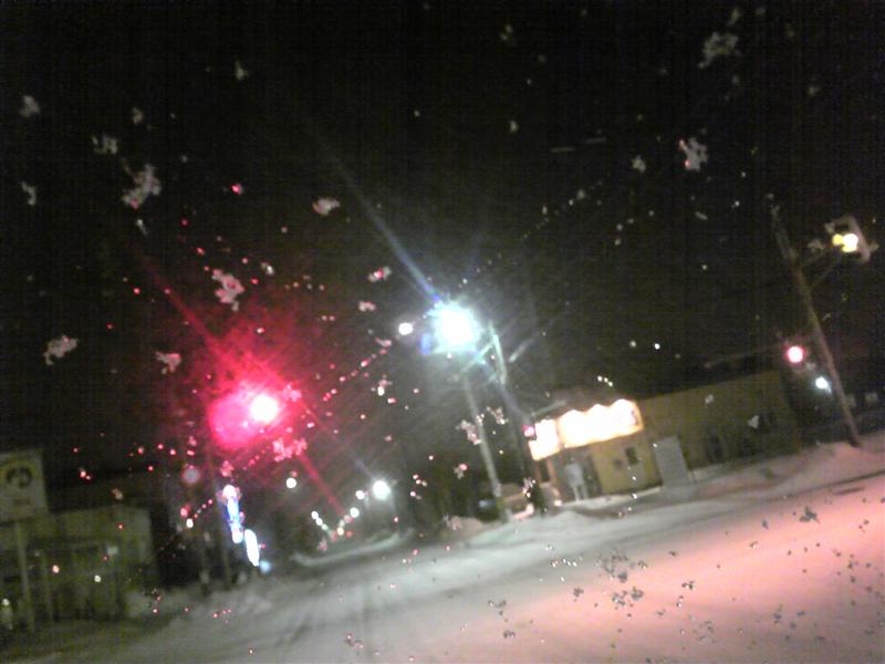 夜は雪になりました