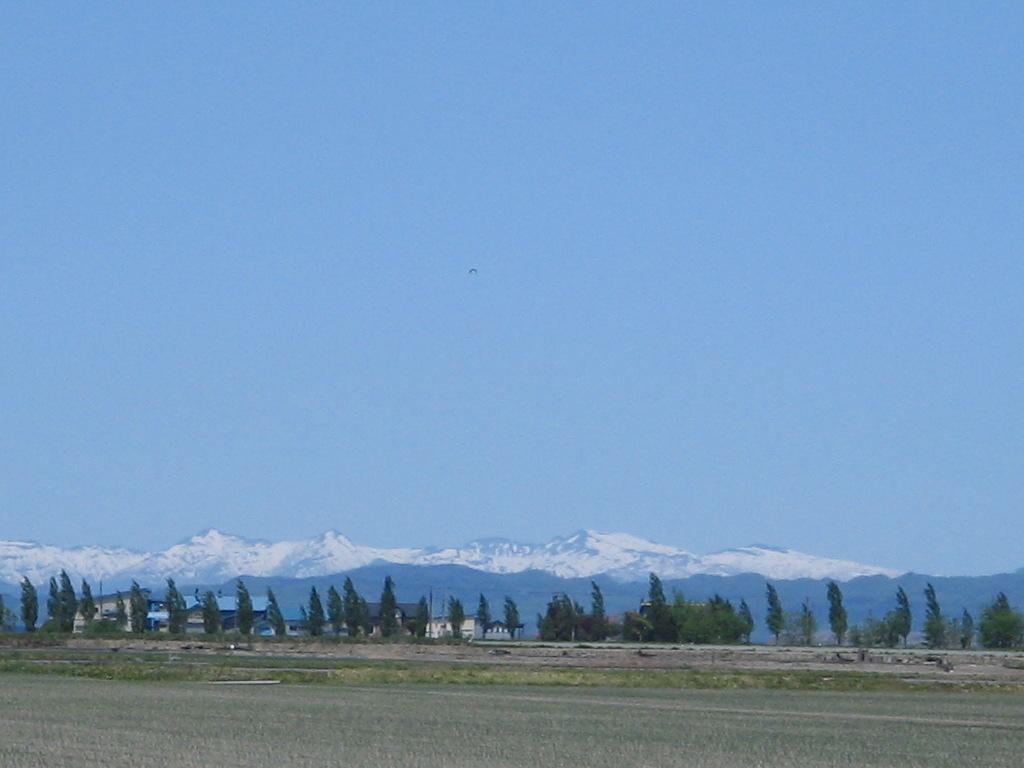 遠くの山には まだ雪が乗ってるよ