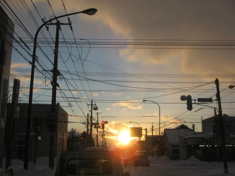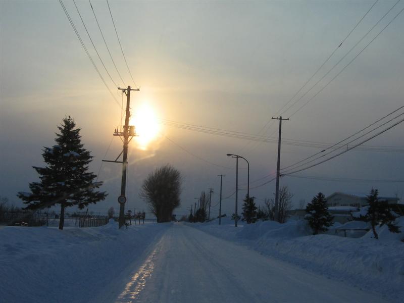 雪の中の夕陽だよ~