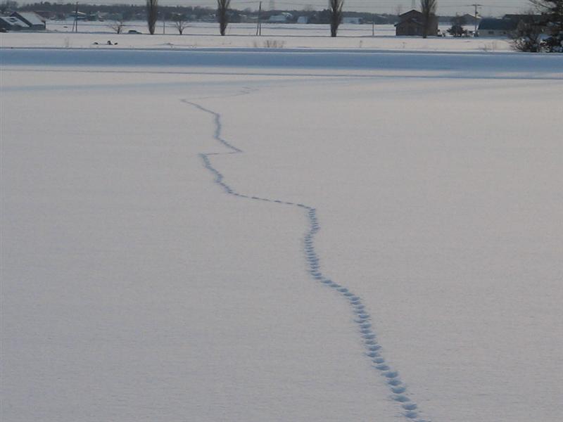 ゆきのっぱらに キタキツネの足跡が・・・