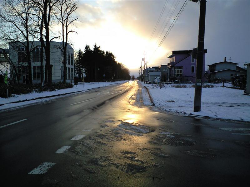 朝は 道路にうっすらと雪が・・・