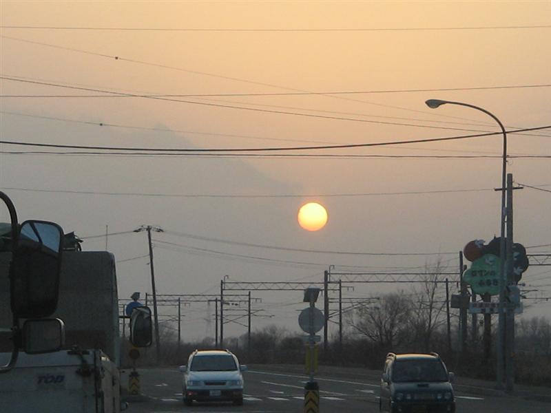 夕陽は ポッカリと浮いてる感じの今日の風景でした